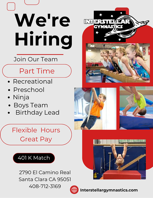 We are currently in the process of opening a second, 10,000sqft location in Berkeley. We are looking for gymnastics coaches to help with: